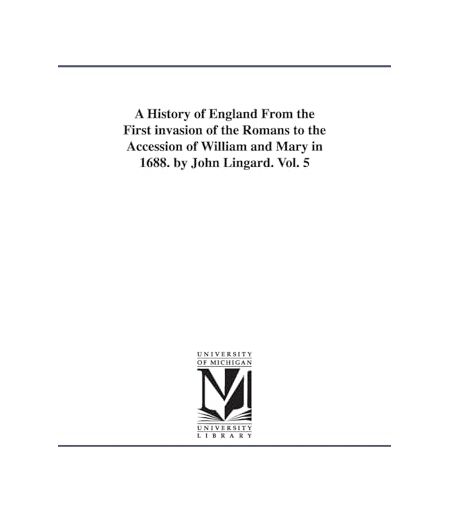 Michigan Historical Reprint Series - A history of England from the first invasion of the Romans to the accession of William & Mary in 1688. By John Lingard. - Preis vom 18.09.2025 05:07:49 h