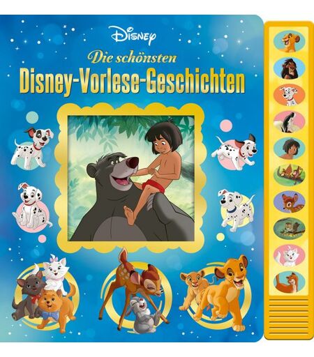 5 beliebte Disney-Klassiker in einem Band! In diesem bezaubernden Vorlese-Soundbuch tummeln sich liebgewonnene Charaktere: Erobere mit Simba das Geweihte Land zurück, entkomme mit den 101 Dalmatinern der bösen Cruella, schwinge dich mit Mogli durch den Dschungel, lauf mit Bambi und tanz mit den Aristocats. 10 Sounds untermalen die Erzählungen und machen sie noch lebendiger. Die Geschichten eignen sich sowohl zum Wiederentdecken als auch zum Kennenlernen, sowohl zum Vorlesen als auch zum Lesenüben. Die beliebten Figuren und Geschichten wecken die Lust am Lesen und an Büchern. ...