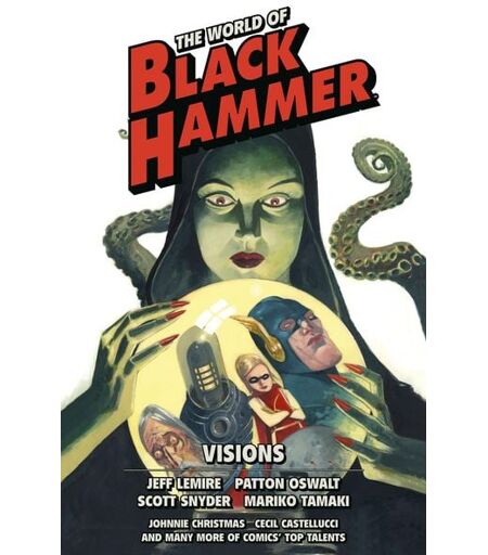 This collection features exciting stories from some of the leading creators in comic books, that take place in the world of Jeff Lemire and Dean Ormston’s Eisner award–winning Black Hammer superhero universe. Creators such as Patton Oswalt, Scott Snyder, Mariko Tamaki, Chip Zdarsky, Kelly Thompson, Cullen Bunn, Johnnie Christmas, Geoff Johns, Cecil Castellucci, and many more of comics’ top talents take on some of the greatest heroes and villains of Spiral City! Collecting Black Hammer: Visions #1-8 with pinups by Gilbert Hernandez, Evan Dorkin, Kelley Jones, Yuko Shimizu, Veronica Fish, Dan Brereton, Annie Wu, and more in a affordable omnibus! ...
