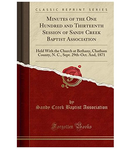 Association, Sandy Creek Baptist - Minutes of the One Hundred and Thirteenth Session of Sandy Creek Baptist Association: Held With the Church at Bethany, Chatham County, N. C., Sept. 29th-Oct. And, 1871 (Classic Reprint) - Preis vom 18.09.2025 05:07:49 h