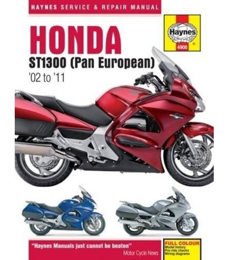 Complete coverage for your vehicleWritten from hands-on experience gained from the complete strip-down and rebuild of a Honda Motorcycle ST1300, Haynes can help you understand, care for and repair your Honda Motorcycle ST1300. We do it ourselves to help you do-it-yourself, and whatever your mechanical ability, the practical step-by-step explanations, linked to over 900 photos, will help you get the job done right. Regular servicing and maintenance of your Honda Motorcycle ST1300 can help maintain its resale value, save you money, and make it safer to ride.What's covered: ST1300-2/A-2 1260cc 2002ST1300-3/A-3 1260cc 2003ST1300-4/A-4 1260cc 2004ST1300-5/A-5 1260cc 2005ST1300-6/A-6 1260cc 2006ST1300-7/A-7 1260cc 2007ST1300-8/A-8 1260cc 2008ST1300-9/A-9 1260cc 09 - 11 ...