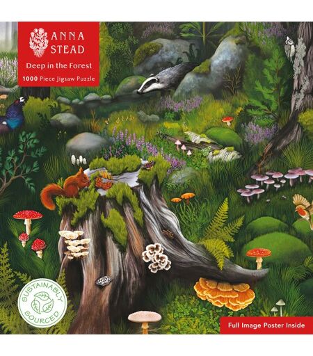 New title in the exciting series of ethical, sustainable and earth-friendly jigsaw puzzles from Flame Tree, featuring powerful and popular works of art, using ethically sourced materials, sturdy pieces and plastic-free packaging. Part of a new, exciting series of ethical, sustainable and earth-friendly jigsaw puzzles that feature powerful and popular works of art. The 1000 pieces will satisfy your need for a challenge, with the charming .Deep in the Forestby Anna Stead. Intended for adults and children over 13 years. Not suitable for children under 3 years due to small parts. Includes an A4 poster for reference. Finished Jigsaw size 735 x 510mm / 29 x 20 ins. Anna Stead is an illustrator working from her home in the beautiful North Cotswolds. She draws inspiration from nature, legend, history, folklore, literature, folk art and the mythic arts. She has a background in medieval studies and is a lover of fantasy literature. SUSTAINABLY SOURCED. Flame Tree actively strives to promote ethical development and environmental conservation. ...