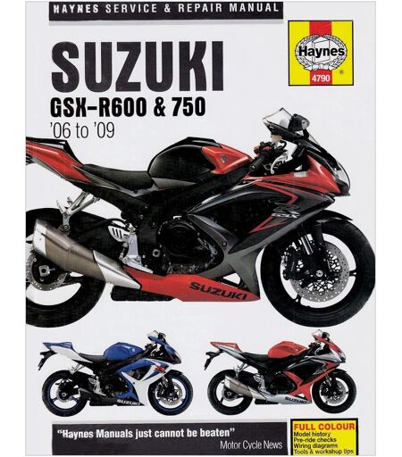 Brand : Haynes, Binding : hardcover, Label : Suzuki GSX-R600 and 750 Service and Repair Manual : 2006 to 2008 (Haynes Service and Repair Manuals), NumberOfItems : 1, PackageQuantity : 1, medium : hardcover, numberOfPages : 304, publicationDate : 2009-04-30, releaseDate : 2009-04-30, languages : english, ISBN : 1844257908 ...