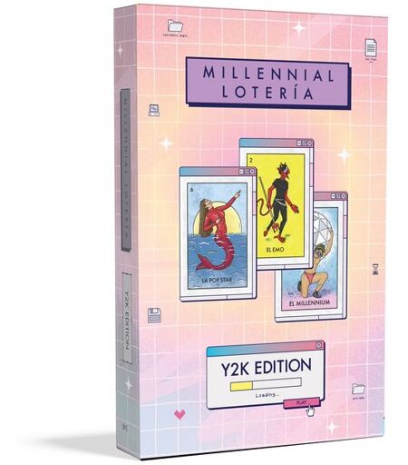 "El Flip Phone! La Boy Band! Los Beanie Babies! This Y2K Edition of Millennial Lotería is a nostalgic blast from the past that you’ll immediately add to your top 8 on Myspace. Bust out those neck chokers, put on your favorite low-rise jeans, and turn on TRL, because we’re about to play Millennial Lotería like it’s 1999. Millennial Lotería: Y2K Edition blends your favorite ""Mexican Bingo"" game with all your favorite things from growing up in the late '90s and early aughts. With all new cards like El AIM, El Ring Pop, Los Lunchables, and Las Frosted Tips, this Y2K edition will transport you right back to the comfort of your inflatable couch. Millennial Lotería: Y2K Edition includes: • 46 cards • 10 boards • 108 CD tokens" ...