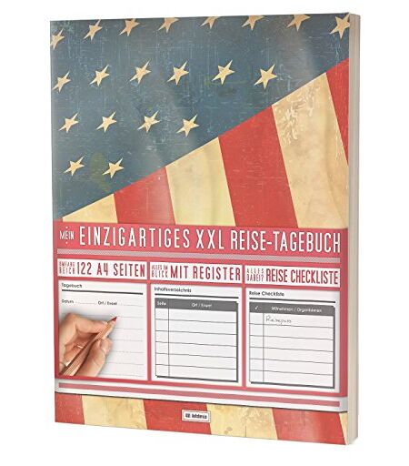 & More, XXL Notebooks - Mein Reisetagebuch • 122 Seiten, Register, Kontakte / Neue Auflage mit Reise Checkliste / PR401 „Amerika Flagge“ / DIN A4 Soft Cover - Preis vom 18.09.2025 05:07:49 h