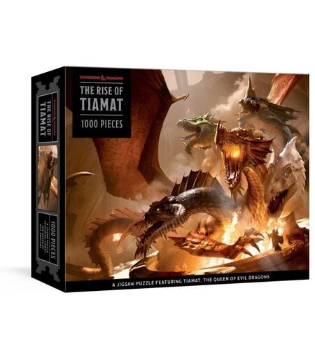 This officially licensed Dungeons and Dragons 1,000-piece puzzle is a monstrous challenge for adventurers across the Realms. • The enormous five-headed dragon Tiamat breaks free from imprisonment in the Nine Hells and makes her ascent to claim the Well of Dragons as her lair in this puzzle, featuring the vivid cover image from The Rise of Tiamat. • Stunning 20 in. by 27 in. design makes for a great display once finished or take it apart and complete it again for endless fun. • Sturdy puzzle pieces fit perfectly together, are virtually dust-free with minimal glare, and are designed for easy handling. • The perfect gift for avid and new Dungeons and Dragons fans alike! ...