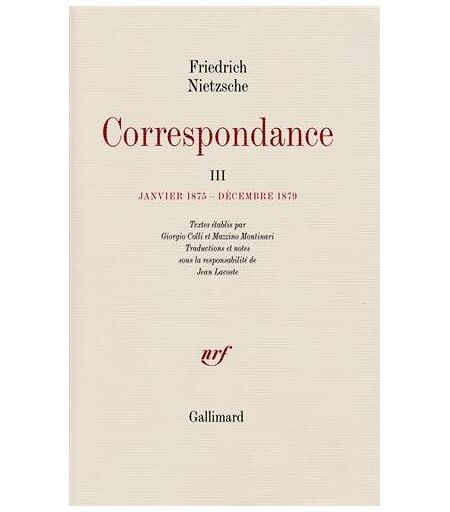 Friedrich Nietzsche - Correspondance : Tome 3, Janvier 1875-décembre 1879 - Preis vom 18.09.2025 05:07:49 h