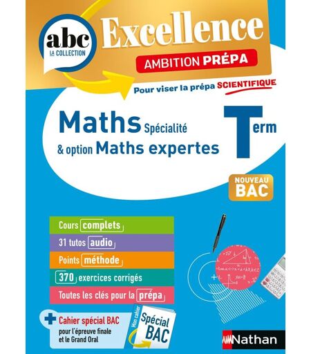 Binding : paperback, Label : ABC BAC Excellence - Maths prépa scientifique Term, Format : big_book, medium : paperback, numberOfPages : 768, publicationDate : 2024-03-07, releaseDate : 2024-02-24, languages : french, ISBN : 2095033965 ...