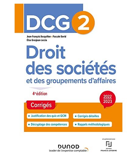 Jean-François Bocquillon - DCG 2 Droit des sociétés et des groupements d'affaires - Corrigés 2022-2023 (2022-2023) - Preis vom 18.09.2025 05:07:49 h