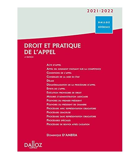 Ambra, Dominique d' - Droit et pratique de l'appel 2021/2022 - 4e ed. - Preis vom 18.09.2025 05:07:49 h