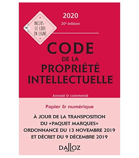 unbekannt - Code de la propriété intellectuelle 2020, Annoté et commenté - 20e ed. (Codes Dalloz Professionnels) - Preis vom 18.09.2025 05:07:49 h