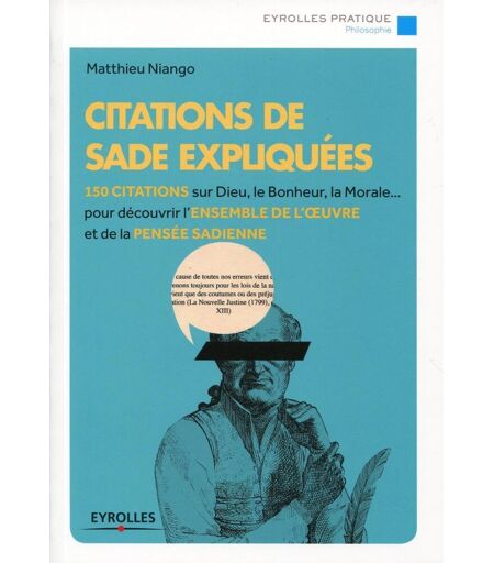 Brand : EYROLLES, Binding : paperback, Label : Citations de Sade expliquées : 150 citations sur Dieu, le bonheur, la morale... pour découvrir l'ensemble de l'oeuvre et de la pensée sadienne., medium : paperback, numberOfPages : 178, publicationDate : 2014-03-20, languages : french, ISBN : 2212558813 ...
