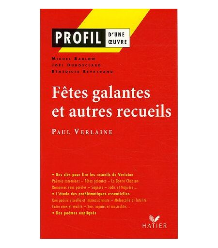 Binding : Taschenbuch, Label : Hatier, Publisher : Hatier, medium : Taschenbuch, publicationDate : 2005-09-14, authors : Paul Verlaine, Michel Barlow, Joël Dubosclard, Bénédicte Reveyrand, languages : french, ISBN : 2218921480 ...
