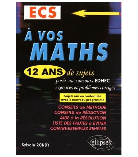 Sylvain Rondy - A Vos Maths 12 Ans de Sujets Corrigés Posés au Concours EDHEC 2004-2015 ECS Conforme au Nouveau Programme - Preis vom 18.09.2025 05:07:49 h