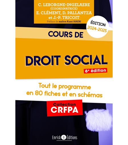 Binding : paperback, Edition : 6, Label : Cours de droit social 2024-2025 : Tout le programme en 80 fiches et en schémas, Format : big_book, medium : paperback, numberOfPages : 712, publicationDate : 2024-06-19, languages : french, ISBN : 2383133000 ...