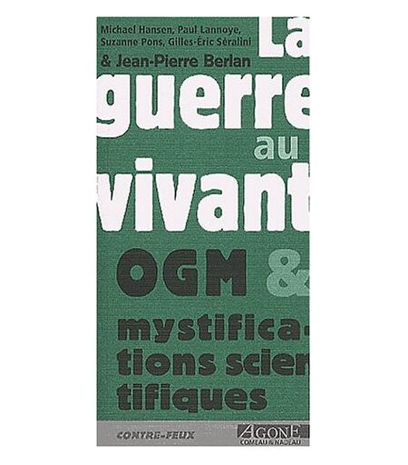Binding : Taschenbuch, Label : Agone, Publisher : Agone, NumberOfItems : 1, medium : Taschenbuch, publicationDate : 2001-02-07, authors : Jean-Pierre Berlan, Michael Hansen, Paul Lannoye, Suzanne Pons, Gilles-Eric Seralini, languages : french, ISBN : 2910846547 ...