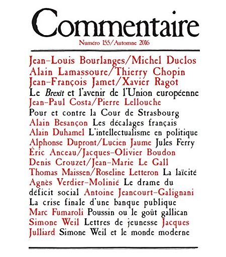 Binding : Taschenbuch, Label : Commentaire, Publisher : Commentaire, medium : Taschenbuch, numberOfPages : 240, publicationDate : 2016-09-08, authors : Collectif, publishers : Jean-Claude Casanova, Jean-Louis Bourlanges, Alain Lamassoure, Marc Fumaroli, Jacques Julliard, Simone Weil, Eric Anceau, ISBN : 2916291466 ...