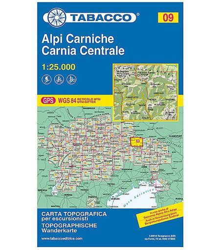 Neu TABACCO Wanderkarte 09, Alpi Carniche/Karnische Alpen, Carnia Centrale 1:25.000 keine Farbe EG Unisex