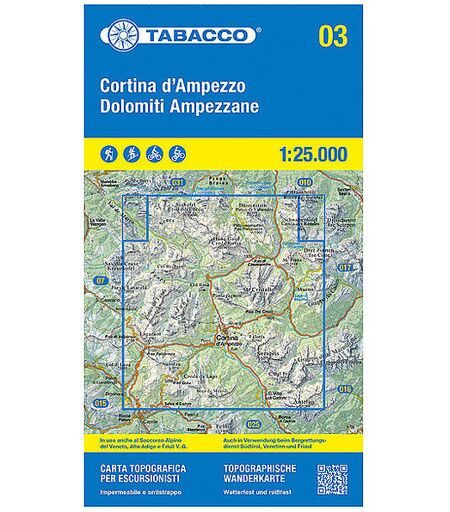 Carta topografica per escursionisti – Topographische Wanderkarte mit GPS-fähigem UTM-Gitter WGS84 mit Skitouren, Radwegen und Mountainbike-Strecken impermeabile e antistrappo - wetterfest und reißfest Gewicht: 110 g Verlag: Casa Editrice Tabacco Reihe: Tabacco 1:25.000 Maßstab: 1:25 Medienart: Karten Sprache: Deutsch, Englisch, Französisch, Italienisch Erscheinungsjahr: 2022 Kontinent: Europa Land: Italien Bundesland / Provinz: Südtirol, Veneto Region: Sextener Dolomiten, Dolomiten, Cadore, Ladinien Orte / Berge / Seen: Cortina d´Ampezzo, Nuvolau, Tofana, Passo di Falzarego, Monte Cristallo, Drei Zinnen, Fanes, Antelao, Marmarole, Lago di Misurina, Monte Piana, San Vito del Cadore, Hohe Gaisl, Passo Giau, Selva di Cadore, sorapis ...