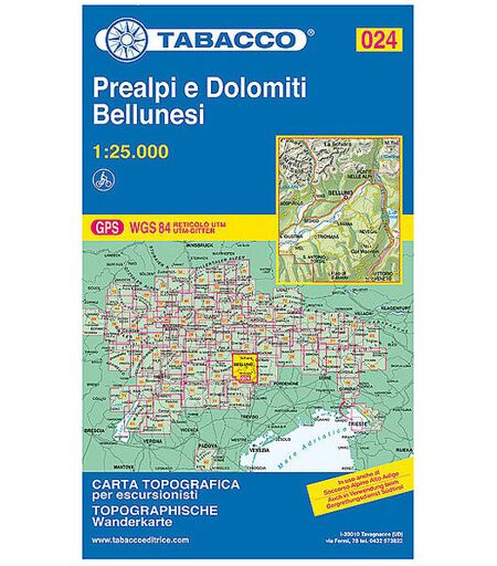 Neu TABACCO Wanderkarte 024, Prealpi e Dolomiti Bellunesi 1:25.000 keine Farbe EG Unisex