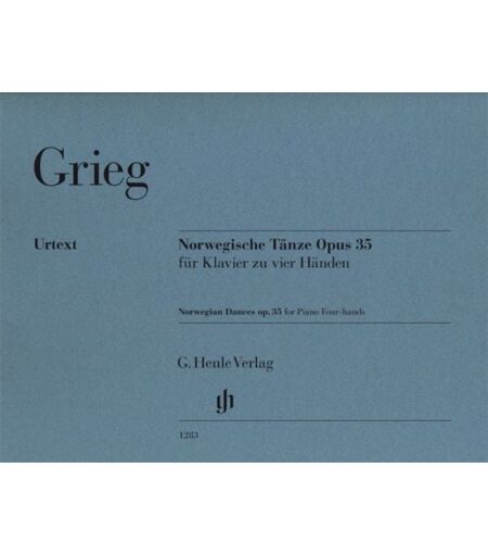 The decisive role that Norwegian folk music played for Edvard Grieg can be felt in almost all of his works. The Norwegian Dances op. 35 of 1880, presented here in an Urtext edition, are arrangements for piano four hands of old folk tunes that Grieg took from a collection published by the musician and researcher Ludvig Mathias Lindeman. For this Henle Urtext edition, all the extant autographs in the Grieg Archive in Bergen, Norway were consulted along with the contemporary first editions. The co-editor here is the Norwegian pianist and Grieg specialist Einar Steen-Nøkleberg, who is also responsible for the fingerings. ...