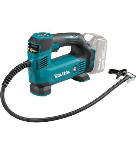 Der Akku-Kompressor DMP180Z von Makita leistet unterwegs gute Dienste. Er ist universell einsetzbar, dank der unterschiedlichen Adapter für Autos, Fahrräder, Bälle und Luftmatratzen, die griffbereit am Gehäuse untergebracht sind. Der gewünschte Druck in bar lässt sich flexibel einstellen, und beim Erreichen des eingestellten Drucks stoppt der Kompressor automatisch. Das beleuchtete Display und die integrierte LED erleichtern das Arbeiten in dunklen Bereichen und in der Dämmerung. Außerdem bietet der Akku-Kompressor DMP180Z einen Sicherheitsschalter gegen unbeabsichtigtes Einschalten und ein ergonomisches Griffdesign für den Bedienungskomfort. Der Akku-Kompressor lässt sich mit den 18 Volt-Akkus betreiben, wie sie auch in den Makita-Werkzeugen und -Gartengeräten enthalten sind. ...