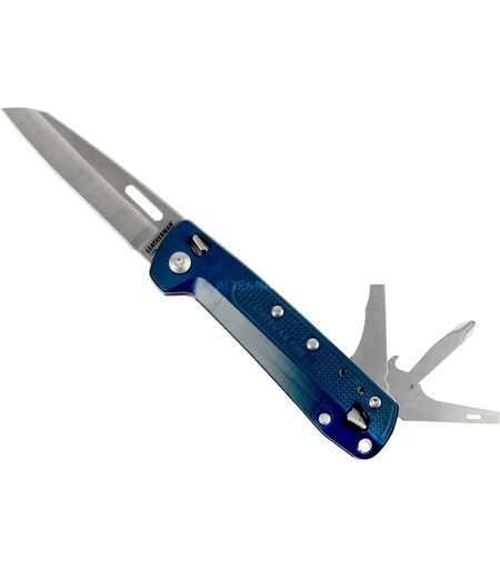 Das Leatherman Multitool FREE K2 in der Farbe "Navy" mit einer Edelstahl-Klinge von 8,4cm Länge und sieben weiteren Tools definiert den Begriff Multifunktion neu. Es lässt sich einfach mit einem leichten Daumendruck von der Außenseite des ergonomisch geformten Aluminium-Handgriffs öffnen. Die einzigartige Magnet-Technologie des Leatherman FREE ermöglicht die schnelle und leichte Bedienung aller Werkzeuge. So sind alle Tools schnell einsatzbereit. Durch diese Konstruktion sind die einzelnen Tools auch weniger Reibung ausgesetzt, so dass man noch länger Freude am Leatherman FREE haben wird. Außer dem Messer enthält das FREE K2 einen Nagelheber, einen Paketöffner, eine Ahle, einen Flaschenöffner, einen Kreuzschlitz-Schraubendreher, einen mittleren Schlitz-Schraubendreher und einen Uhrmacherschraubendreher. ...