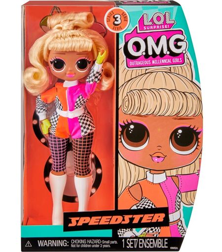 Die Puppen der L.O.L. Surprise OMG Serie 3 begeistern mit ihrem stilvollen Fashion-Outfit. Jede Puppe kommt mit überraschenden Zubehör-Teilen, zwei tollen Textil-Kleidungsstücken, toll gestyltem Haar und einem Standfuß. Speedster ist immer bereit für die Spitzenposition und genießt das aufregende Gefühl von Geschwindigkeit. Die Puppe ist etwa 25 cm groß und hat bewegliche Gliedmaße. ...