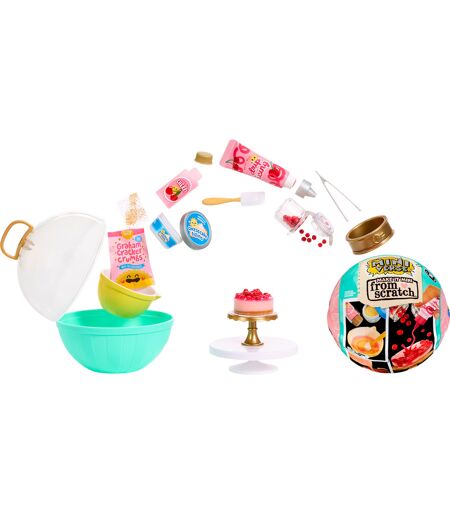 Jede Menge Koch- und Backvergnügen im Mini-Format - mit den Make It Mini From Scratch Series 2 Mini Collectibles! Jeder Ball enthält realistische Mini-"Zutaten" und Zubehör, mit denen Mini-Nachbildungen von verschiedenen Lieblingsspeisen hergestellt werden können. Jede Verpackung ist eine Überraschung, so dass du erst beim Auspacken erfährst, welchen Mini du erhalten hast. Und dabei gibt es so viel zu entdecken: Von Mini-Replikaten von Pasta, Kuchen bis zu Pizza - insgesamt sind in dieser Serie 12 Mini-Rezepte enthalten. Lies die "Rezeptkarte“, um deinen Mini herzustellen. Danach einfach aushärten lassen - fertig! ...
