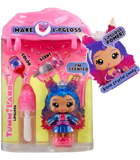Willkommen im Yummiland, wo sich die mutigen Yummis zusammentun, um ihre unglaubliche, essbare Stadt mit ihren Lipgloss-Superkräften zu beschützen! Begleite sie auf ihren Abenteuern, indem Du Deinen eigenen echten Lipgloss kreierst. Jeder Lipgloss enthält eine Grundierung, eine Farbe und einen Duft, aus denen ein eigener, schimmernder Lipgloss zusammengemischt werden kann. Die Yummi-Puppe und der Lipgloss können mit dem mitgelieferten Schlüsselanhänger auch mit auf Reisen genommen werden. Diese duftenden Puppen sind beweglich und haben abnehmbare Kleidungsstücke und Accessoires. Die Serie 2 enthält 7 Charaktere. Roxie Crystal Candy erhält in der Yummiland-Welt durch ihren speziellen Lipgloss die Fähigkeit, Erdbeben mit ihrer Rock & Roll-Gitarre zu erzeugen. ...