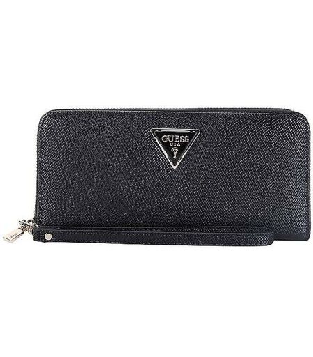 Große Damen Geldbörse aus Lederimitat Saffiano Optik 12 Steckfächer für Kreditkarten Innenliegendes Münzfach mit Reißverschluss Logo Emblem vorne Reißverschlusfach an der Rückseite Farbbezeichnung: Black Maße: ca. 21x10x2 cm Material: 100% Polyurethan ...