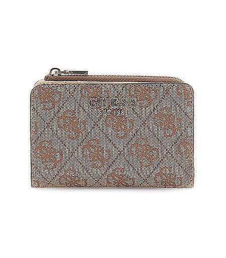 Damen Geldbörse aus Kunstleder mit Allover-Logo-Muster Mehrere Steckfächer Scheinefach Reißverschlussfach für Hartgeld Farbbezeichnung: Latte Logo Maße 12x8x2 cm Material: Polyurethan ...