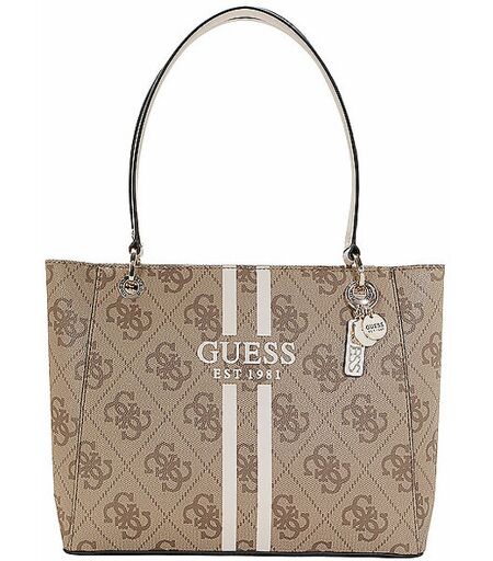Damen Shopper aus Lederimitat mit Logo Allover Muster Mit zwei Tragegriffen Verschluss mit Reißverschluss. Metallbestandteile hellgoldfarben Großes Hauptfach 4G-Logoprint mit Kontraststreifen vorn Abnehmbarer Logo-Charm unten am Henkel Logofutter Farbbezeichnung: Latte Logo Maße: 37 x 26 x 10 cm Material: 100 % Polyurethan ...