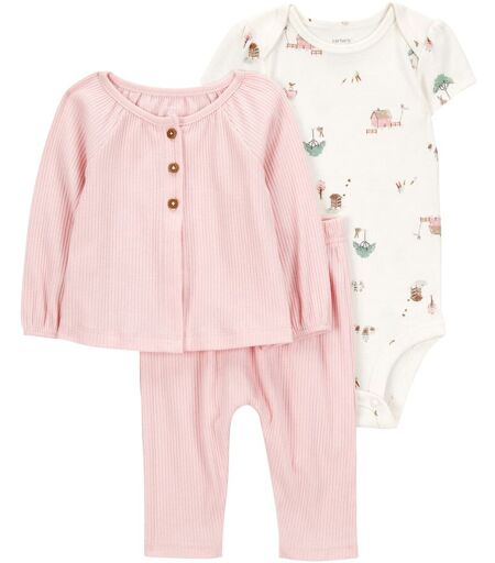 Carter's 3-tlg. Set Body kurzarm, Sweatjacke und Leggings Farm Rippqualität - rosa natur - Maedchen - Size: 62