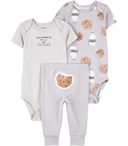 Carter's 3-tlg. Set 2 Bodys kurzarm und Jogginghose Cookies - grau mehrfarbig - Unisex - Size: 68