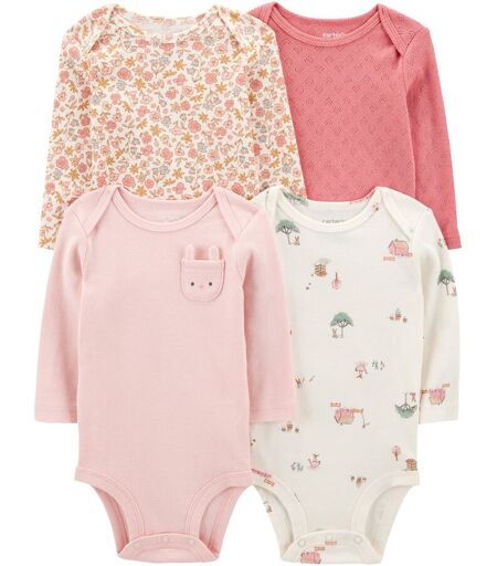 Carter's 4er-Pack Bodys langarm Farm Blumen Ajour Ringel rosa mehrfarbig