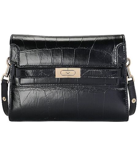 Damen Umhängetasche aus Leder mit Croco-Prägung Besatz aus italienischem Wildleder Doppelte Klappe mit Überschlag Druckknöpfe; Riemchen mit Schiebeschnalle Verstellbarer, abnehmbarer Umhängeriemen Mehrere Innenfächer Maße: ca. 24 x 17 x 8cm Farbbezeichnung: Black Material: Leder ...