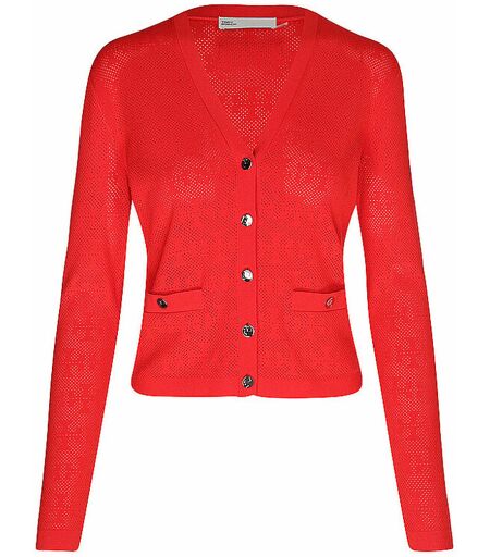 Dieser V-Ausschnitt-Cardigan aus Strickjacquard mit unserem T-Monogramm überzeugt durch sein kurzes, schmal geschnittenes Design. Aufgesetzte Taschen auf Taillenhöhe setzen stilvolle Akzente. Ein vielseitiger Begleiter für jede Saison. Damen Strickjacke aus Viskose-Mischung mit T-Monogramm-Jacquard V-Ausschnitt Schließt mit Knopfleiste Langarm Aufgesetzte Eingrifftaschen mit Knopf Aufhänger mit Tory Burch-Stickerei im Nacken Gerade Passform Farbbezeichnung: Blazing Red Material: 79% Viskose, 21% Polyester ...