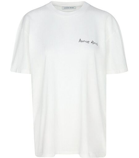 Damen T-Shirt aus reiner Baumwolle Rundhalsausschnitt mit Rippblende Kurzarm Logo-Print auf der Brust Wording-Print im Rückenteil Lockere Passform Farbbezeichnung: Ivory Material: 100% Baumwolle ...