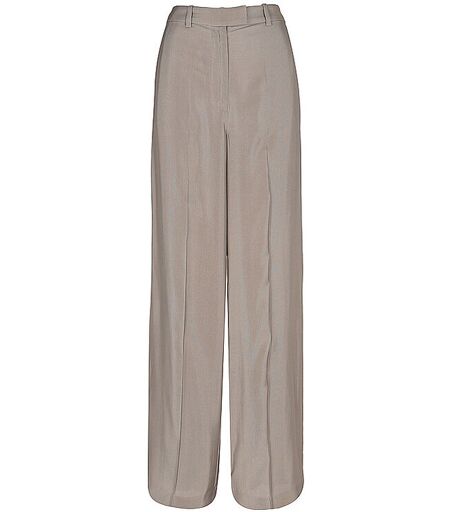 Damen Businesshose aus fließender Viskose Schließt mit zwei Haken und Reißverschluss Seitliche Eingriffstaschen Zwei paspelierte Gesäßtaschen Unifarben Weites Bein Gerader Beinverlauf Farbbezeichnung: Clay Material: 100% Viskose ...