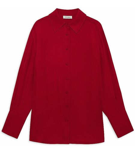 Damen Bluse aus Seiden-Viskose-Mix Kragen Langarm Locker geschnitten Unifarben Stoffbezogene Knöpfe Farbbezeichnung: Scarlet Red Material: 55% Seide, 45% Viskose ...