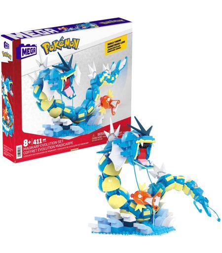 Mit diesem Karpador Evolutionsset von Mattel-Marke MEGA ist der Spielspaß vorprogrammiert. Das Set umfasst zusammenbaubare Karpador- und Garados-Figuren. Kinder können Karpador und Garados zusammenbauen und sie anschließend zum Ausstellen in der Wasserlandschaft platzieren. Garados ist super beweglich und mit einer Länge von mehr als 46 cm so groß wie noch nie. Die Figur hat 12 Verbindungspunkte. Karpador hat bewegliche Flossen und bietet so unterschiedliche Ausstellmöglichkeiten. Zusammen mit anderen MEGA Sets ausstellen. ...