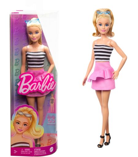 Mattel Barbie Fashionistas-Puppe mit schwarz-weißem Oberteil und pinkem Rock
