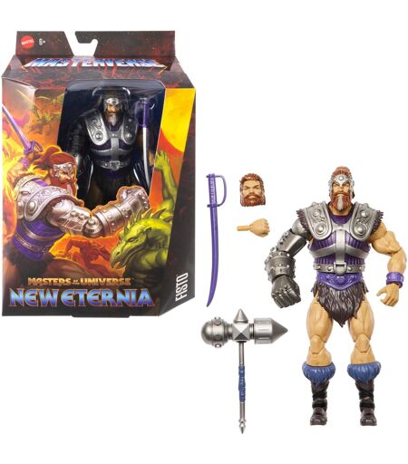 Die Actionfiguren aus Mattels Masterverse-Serie liefern detailgetreue Nachbildungen der Helden aus "Masters of the Universe: Revelation to New Eternia" und "Masters of the Universe: Revolution". Sie sind jeweils etwa 18 Zentimeter groß und können dank ihrer 30 Bewegungspunkte so gut wie jede Pose einnehmen. Die Sammler besonders ansprechende Verpackung mit Sichtfenster enthält außerdem charakterspezifische Zubehörteile wie Waffen oder austauschbare Körperteile. Diese authentische Fisto-Figur enthält die charakteristische Eisenfaust und zwei Köpfe: Einen, der von den Originalillustrationen des Alcala-Minicomics inspiriert ist, und einen mit Pferdeschwanz im Barbaren-Look mit Gesichtspanzerung. Diese Figur hat außerdem einen abnehmbaren Brustpanzer, ein Schwert, eine austauschbare Hand und einen zweiköpfigen Hammer mit einem runden und einem spitzen Ende. ...