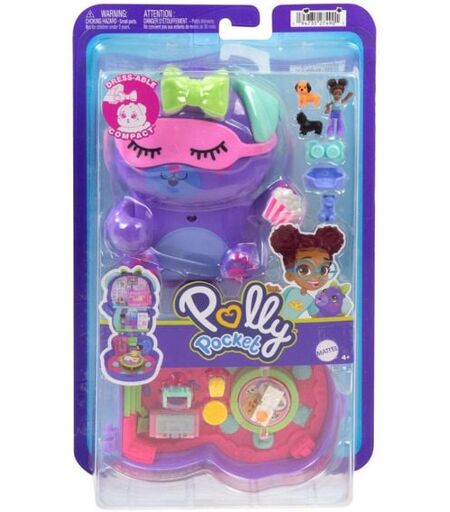 Mattel GmbH Polly Pocket Übernachtungsparty-Welpen-Spielset mit 1 kleinen Puppe und zwei Hündchen, Spielzeug für unterwegs mit Zubehör für Mode und Essen