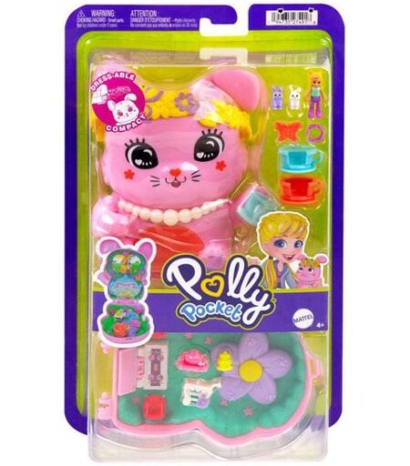 Mattel GmbH Polly Pocket Teeparty-Häschen-Schatulle, Spielset mit 1 kleinen Puppe und zwei Häschen, Spielzeug für unterwegs mit Styling-Accessoires