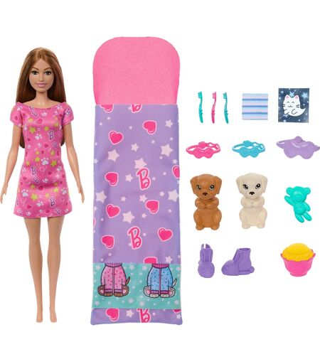 Mattel Barbie-Puppe und Welpen-Pyjama-Party-Spielset mit 2 Spielzeughunden