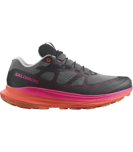 Der Salomon ULTRA GLIDE 2 Damen ist ein völlig neuartiges, extrem gut gedämpftes Trail-Chamäleon. Er ist so konzipiert, dass er sich an unterschiedliche Geländearten und Oberflächen anpasst. Außerdem ist er auch auf langen Strecken komfortabel und angenehm leicht am Fuß – ideal für lange Läufe durch wechselnde Landschaften, egal wohin deine Stimmung oder dein Ehrgeiz dich führt. Für jede Herausforderung und alle Laufbedingungen. Weitere Details zum Salomon ULTRA GLIDE 2 Damen: All Terrain Contagrip®: Unsere All Terrain Contagrip® Sohle ist auf eine Vielzahl unterschiedlicher Oberflächen ausgelegt. Sie bietet auf nassen ebenso wie auf trockenen oder harten Oberflächen Langlebigkeit und ein sicheres Laufgefühl. Energy Foam™: Leichter, reaktiver Schaumstoff aus EVA und Olefin (OBC) bringt dauerhafte Dämpfung und eine lebhafte Energierückführung. Reverse Camber: Die vom Salomon Skisport inspirierte gewölbte Zwischensohlengeometrie sorgt für ein Laufgefühl, als würdest du über dem Boden dahingleiten. Dämpfung Unser auf Energy Foam aufgebautes, super bequemes Zwischensohlenmaterial für gut gedämpfte Landungen selbst bei langen Strecken. Geschmeidiges Abrollen Unsere berühmte Reverse Camber-Rockergeometrie sorgt zusammen mit einer Sprengung von 6 mm für schnelles, geschmeidiges Abrollen. Geringes Gewicht Ein leichter, flexibler und langlebiger Schaft aus Engineered Mesh bietet optimierten, bequemen Fußhalt. Gewicht: 240 g Sprengung: 6 mm (26 mm / 32 mm) Noppentiefe: 3,5 mm Farbe: Plum Kitten / Black/Pink Glo ...