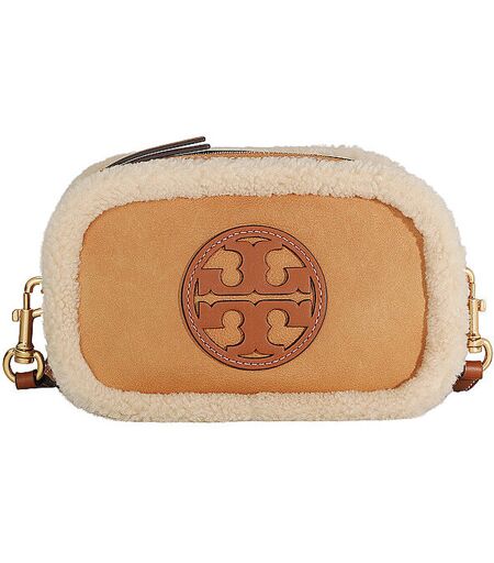 Damen Mini Bag in Shearling-Optik Abnehmbarer und verstellbarer Schulterriemen Logoapplikation auf der Vorderseite Schließt mit Reißverschluss Maße: ca. 21 x 13 x 8cm Farbbezeichnung: Tan Material: Lammfell ...