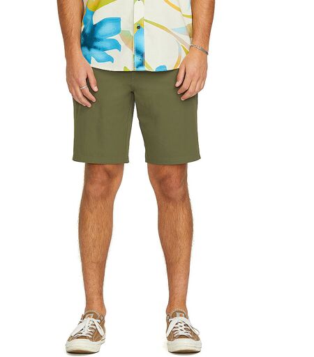 Stylische, feuchtigkeitsableitende Sportshorts, die Streetwear-Look mit leistungsstarker Gewebetechnologie kombiniert. Dieser vielseitige Mix hält dich beim Sport oder in der Freizeit trocken, frisch und gleichzeitig komfortabel. Details: Hybrid Chino-Shorts / Boardshorts für Herren Modern Fit 51 cm (20") Außennaht, 25 cm (10") Innennaht bei Größe 32 V.Co-Tech™ RESIST - Dieses Produkt zeichnet sich durch eine wasserabweisende Beschichtung des Gewebes aus, die hilft, Feuchtigkeit abzuweisen. V.Co-Tech™ ANTI-MICROBIAL - Dieses Produkt ist so behandelt, dass es das Bakterienwachstum verhindert. Fester Bund Recycelter Kunststoffverschluss vorne in der Mitte Handtasche mit Münztasche Versteckte unsichtbare Reißverschlusstasche auf der rechten Seite Die charakteristische asymmetrische Gesäßtasche mit einer Leiste High-Density Volcom Markenlogo Solide Fertigung Kein Mesh-Innenfutter Farbbezeichnung: Wintermoos ...